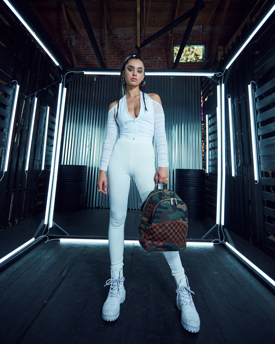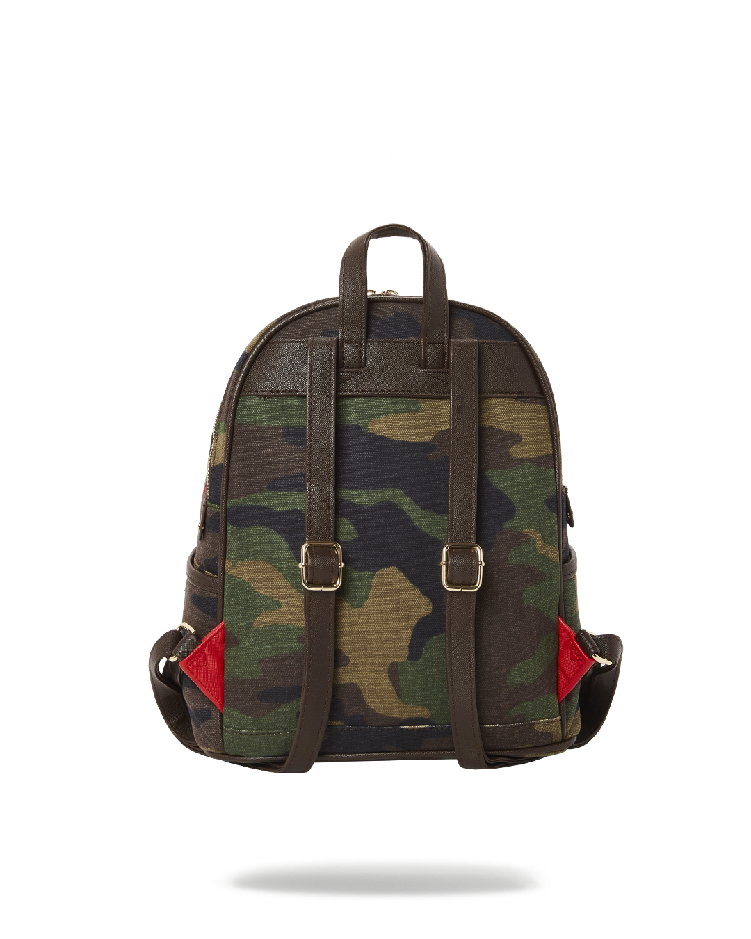 Dimensions: 10″ x 5″ x 11.5″ • Two large main zippered compartments • Side pockets • Zippered Stash pocket • Adjustable straps for custom sizing • Gold zippers with metal hardware