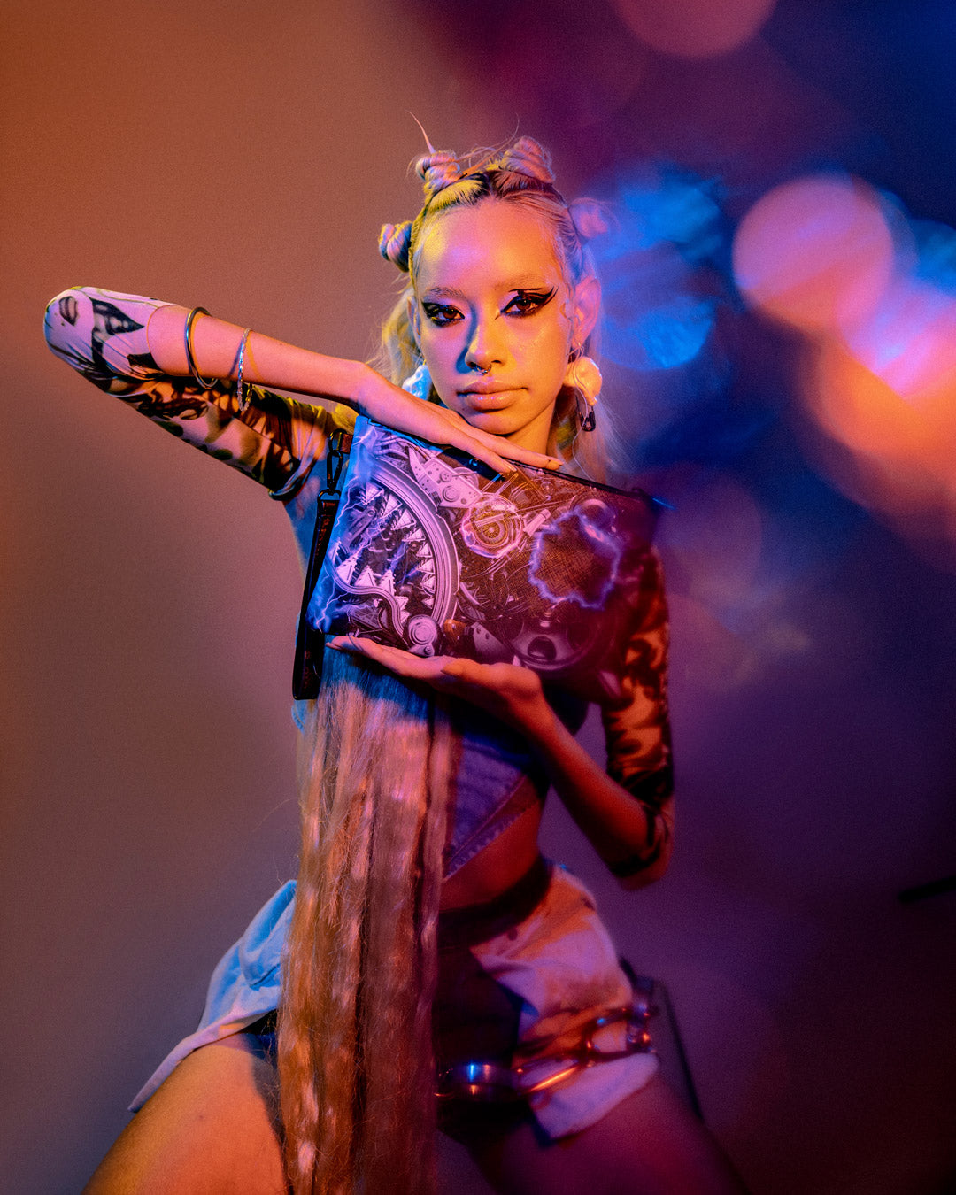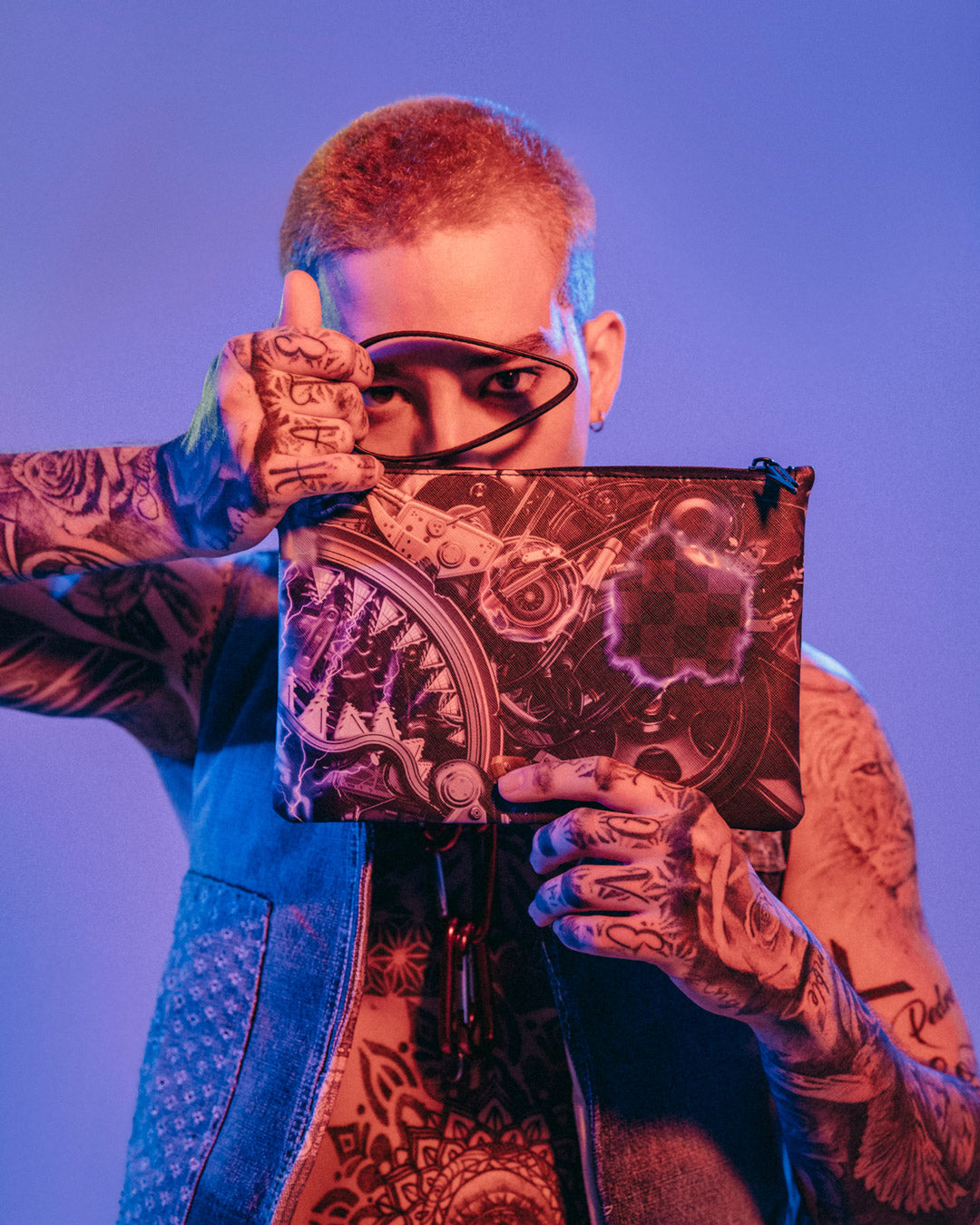 Pouch with removable wristlet strap, Handle on front panel, Zip Closure