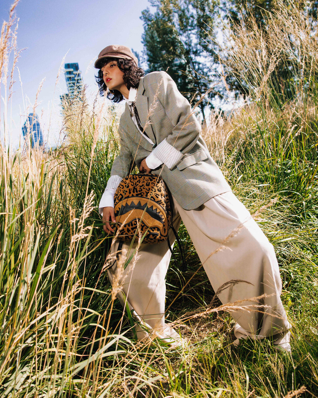 Dimensions: 10″ x 5″ x 11.5″ • Two large main zippered compartments • Side pockets • Zippered Stash pocket • Adjustable straps for custom sizing • Gold zippers with metal hardware