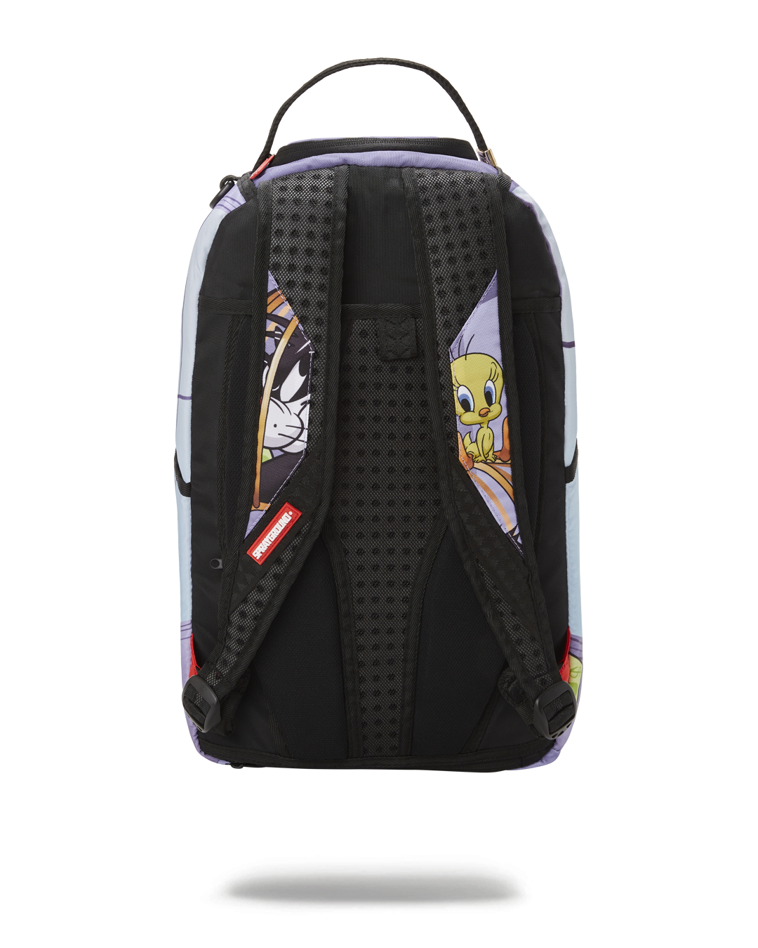 Dimensions: 18″ x 6″ x 11.5″ • Front zipper pocket • Side pockets • Zippered Stash pocket • Separate velour sunglass compartment • Ergonomic mesh back padding • Adjustable Straps for custom sizing • Green zippers with metal hardware • Metal “Sprayground Authentic” badge • Slide through back sleeve connects to carry on luggage to free your hands