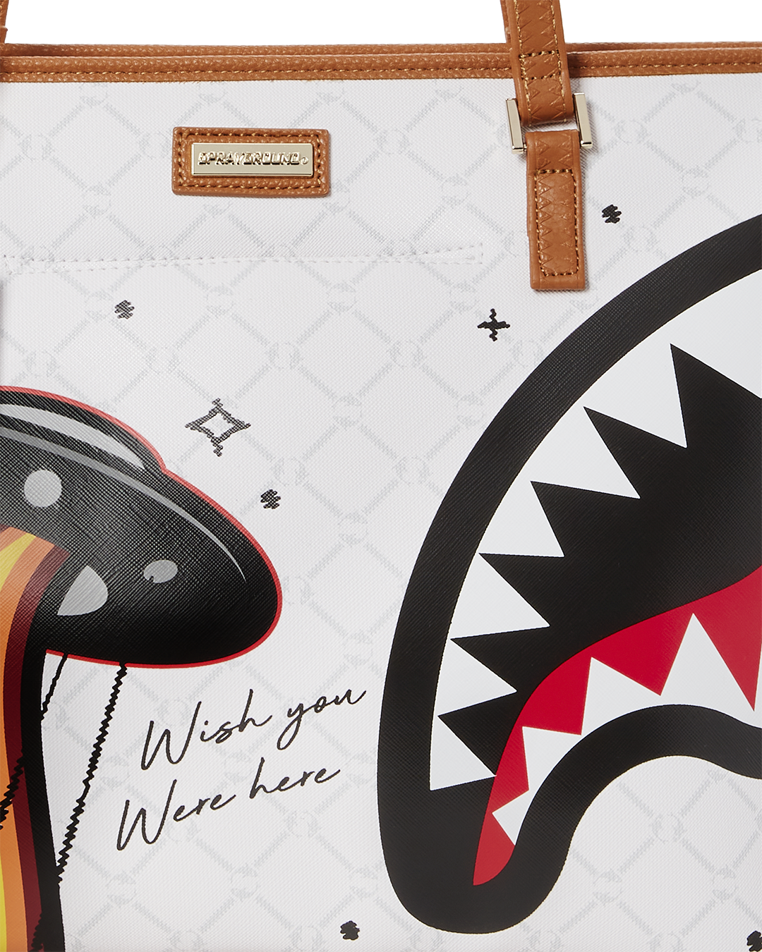 Your over the shoulder bag doesn’t have to be boring anymore. Stand out with the printed Sprayground Totes. Includes Sprayground Logo Keychain Mirror.