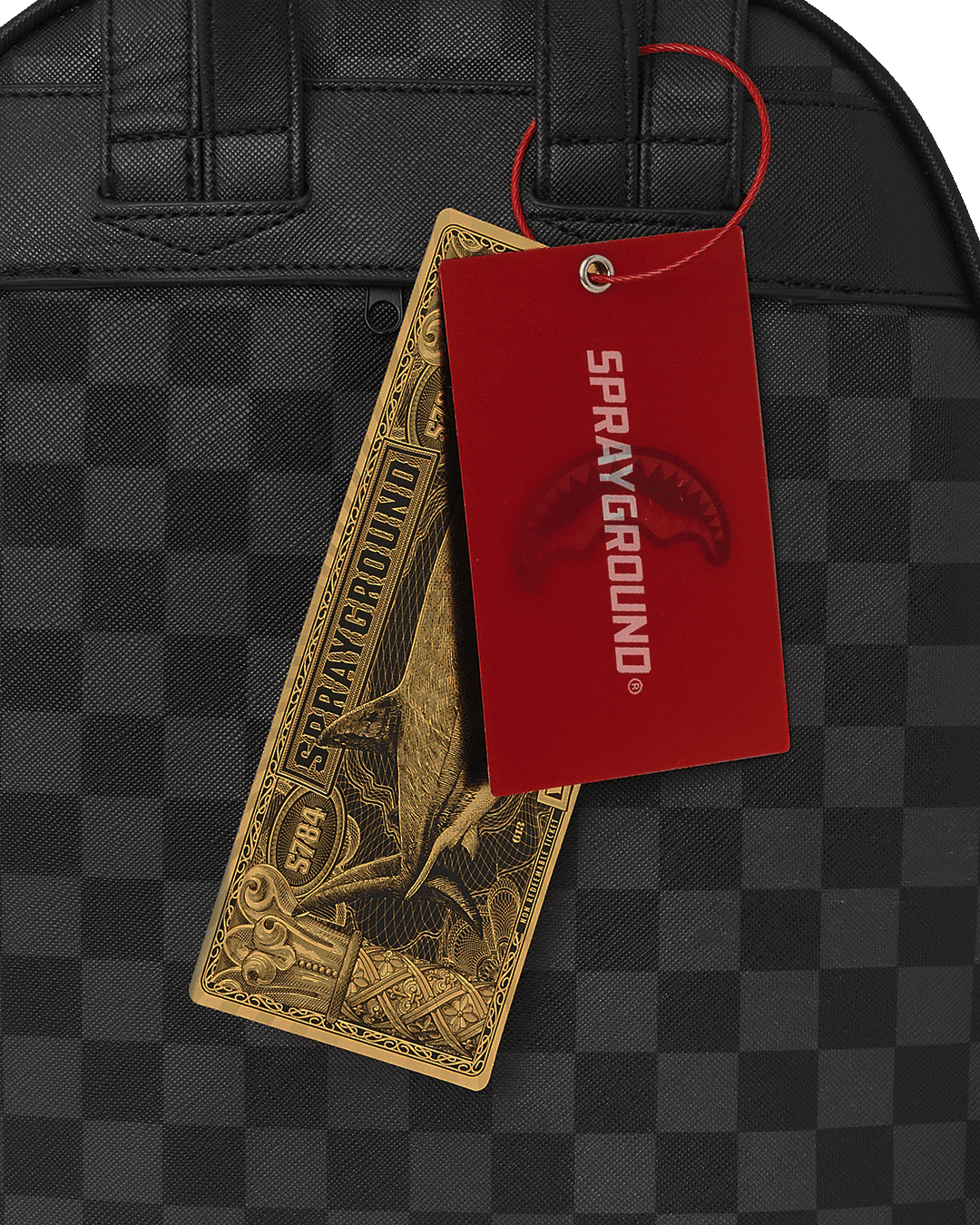 Dimensions: 10″ x 5″ x 11.5″ • Two large main zippered compartments • Side pockets • Zippered Stash pocket • Adjustable straps for custom sizing • Gold zippers with metal hardware